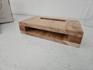 Amplificateur de smartphone artisanal en bois d’aulne et exotique. Son naturel, design élégant, zéro électronique.