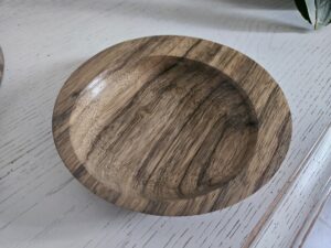 Ce plat en bois tourné est une pièce unique réalisée selon la technique du tournage décentré, une méthode exigeante qui permet d’obtenir un creusage asymétrique et une présence visuelle forte. Cette approche artisanale crée un léger décalage dans la forme, donnant à l’objet un caractère vivant, presque sculptural, tout en respectant l’équilibre et l’harmonie du bois.