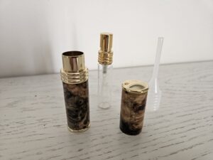 Offrez à votre parfum l’écrin qu’il mérite avec cet atomiseur artisanal en loupe de marronnier, une pièce unique qui allie élégance naturelle et raffinement intemporel.