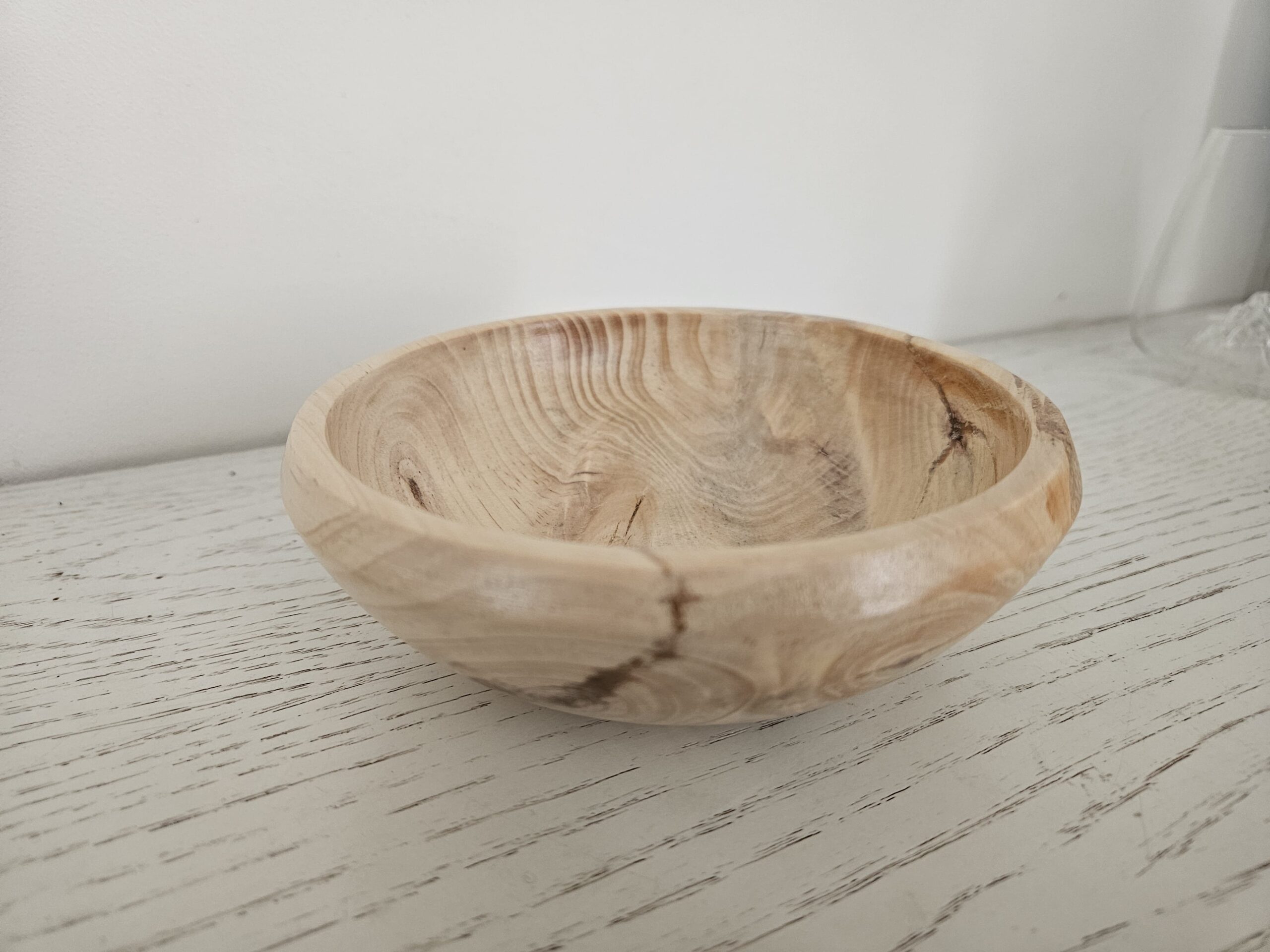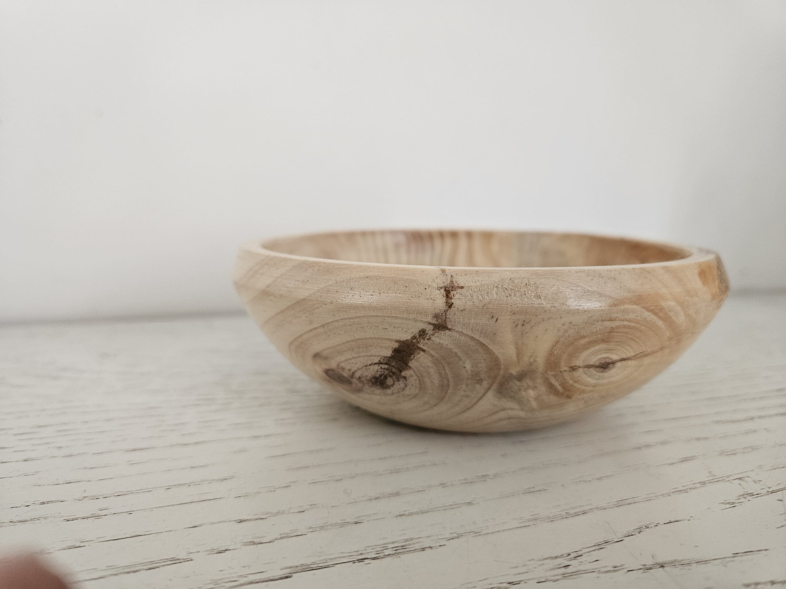 Ce bol en bois de thuya, tourné à la main dans mon atelier, met en valeur toute la noblesse de cette essence méditerranéenne réputée pour ses veines tourbillonnantes, ses nœuds caractéristiques et son parfum naturel subtil. Chaque pièce de thuya possède une identité propre, et ce bol en est une parfaite illustration : un jeu de contrastes naturels, une texture vivante et une profondeur visuelle impossible à reproduire à l’identique.
