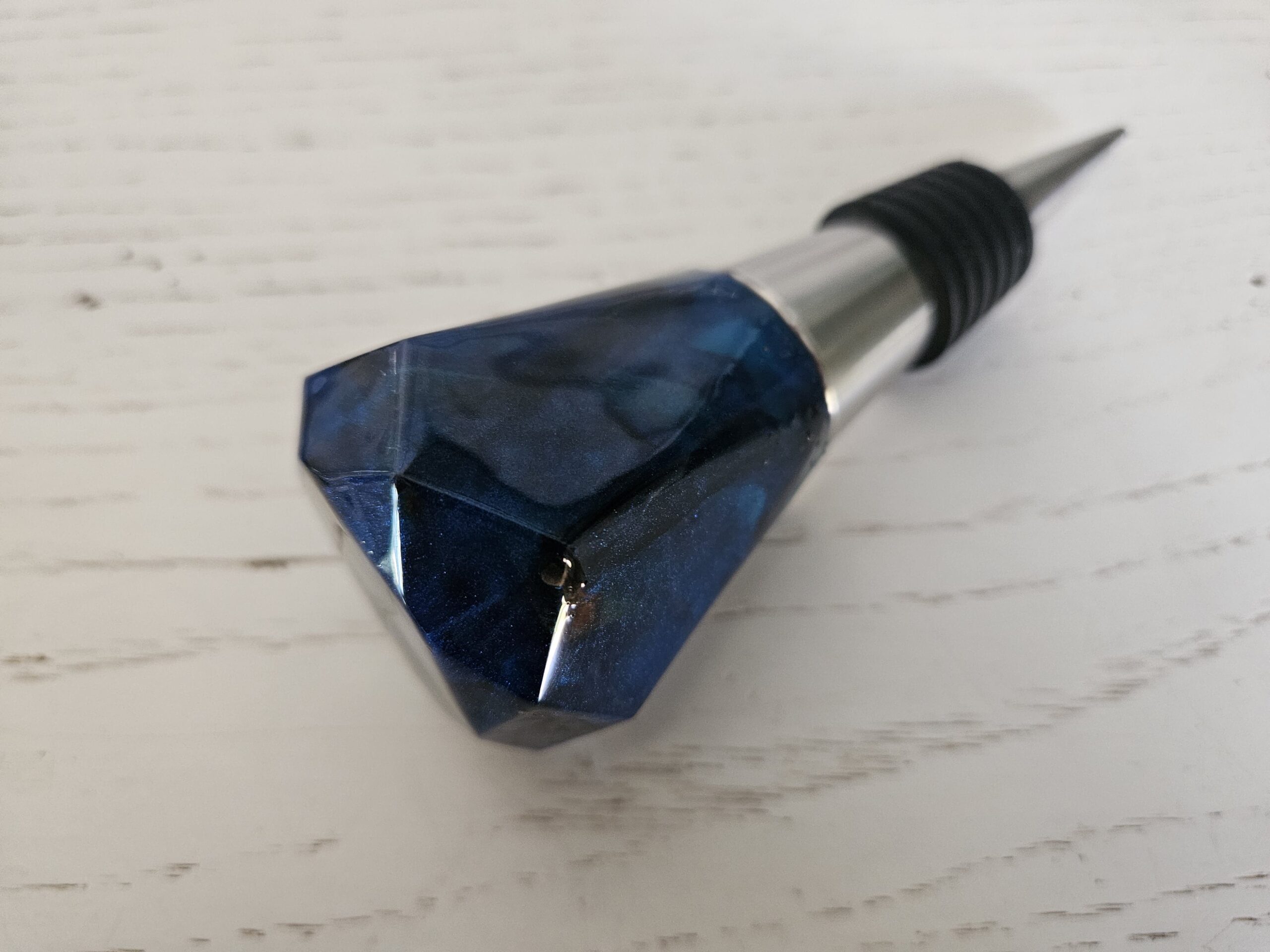 Bouchon de bouteille artisanal en résine et inclusion d’ébène. Pièce unique, élégante et durable, idéale pour sublimer vos bouteilles et préserver leurs arômes.