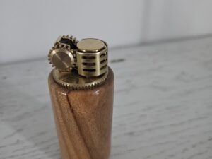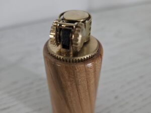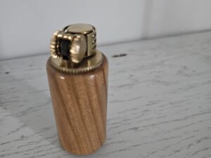 Briquet à essence en bois de cerisier et laiton doré. Élégance vintage et fabrication artisanale, signé Phil’Atelier.