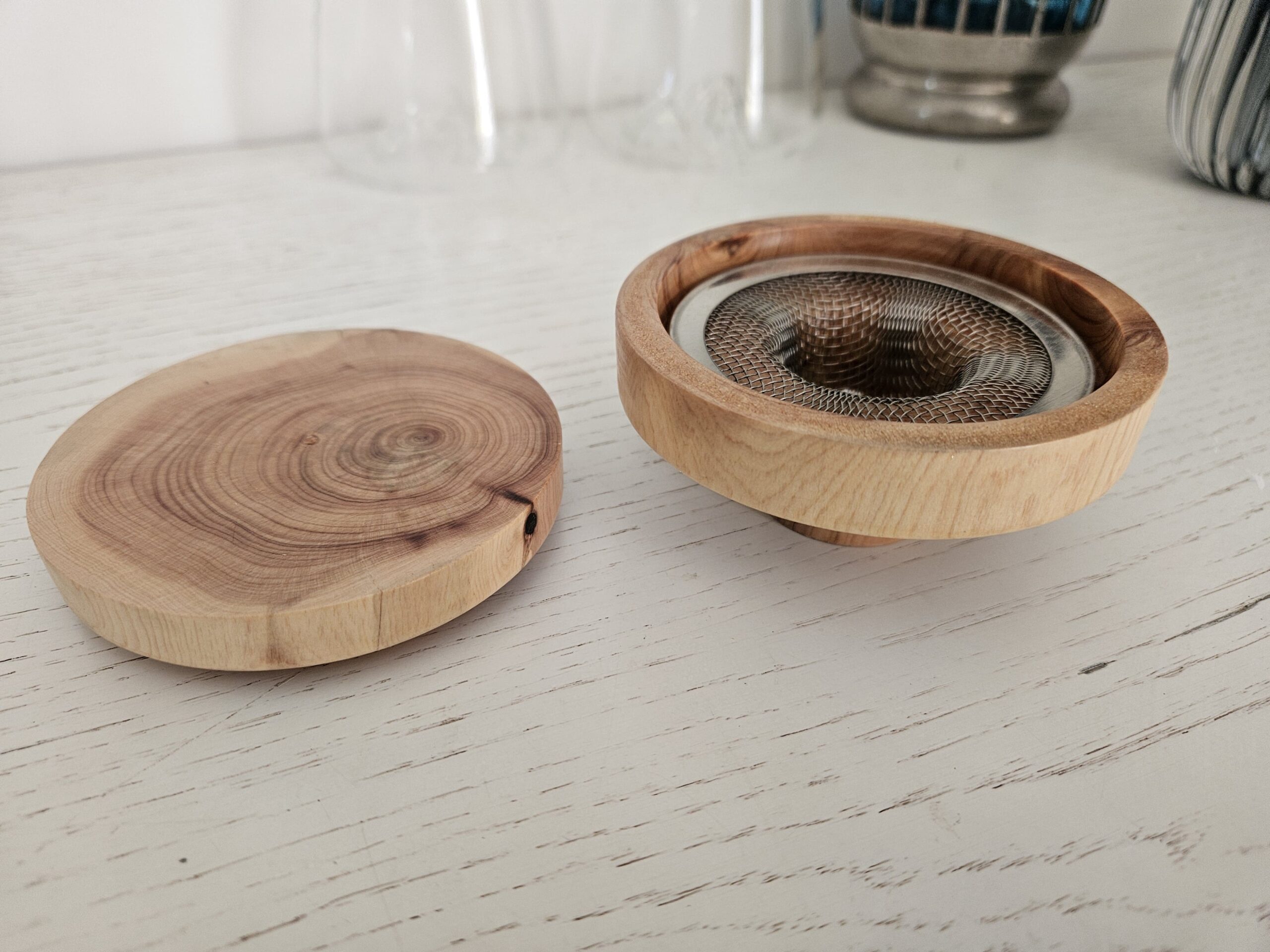 Transformez vos créations en véritables expériences sensorielles avec ce fumoir à cocktail artisanal en bois de cade. Tourné avec précision dans notre atelier, il allie la noblesse du bois à l’ingéniosité d’un système de fumage compact et efficace. Son couvercle ajusté et sa chambre en inox accueillent les copeaux de bois pour diffuser des arômes subtils et enveloppants, parfaits pour sublimer vos cocktails, spiritueux ou même vos mets. Facile à utiliser, il apporte une touche spectaculaire à vos présentations, tout en conservant l’authenticité d’un objet fait main. Un accessoire incontournable pour les amateurs de mixologie et les passionnés de belles matières.
