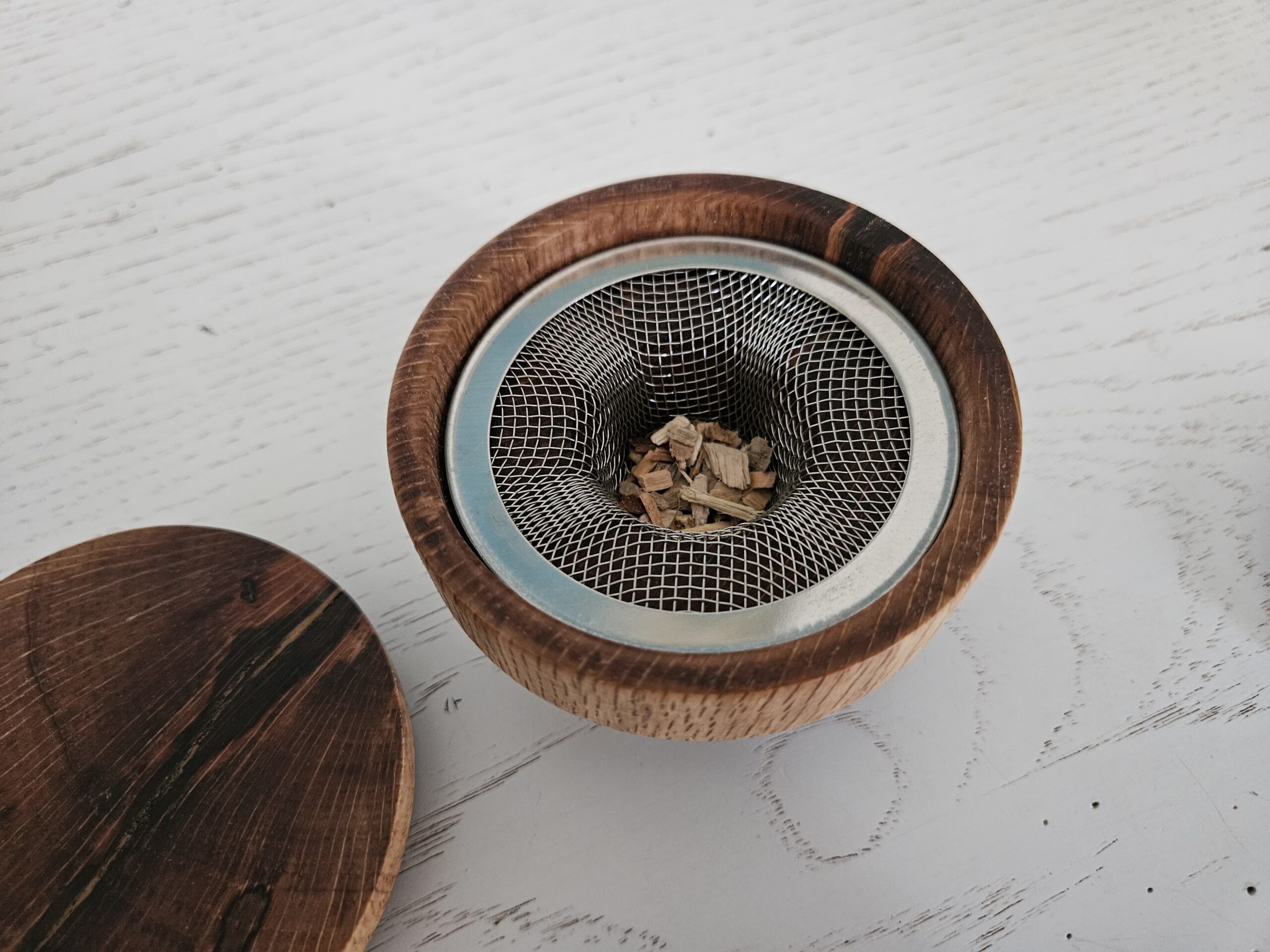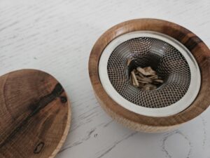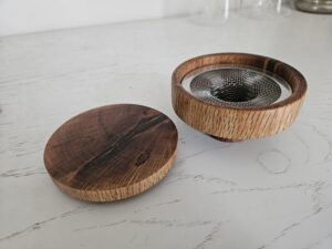 Transformez vos créations en véritables expériences sensorielles avec ce fumoir à cocktail artisanal en bois de chêne liège. Tourné avec précision dans notre atelier, il allie la noblesse du bois à l’ingéniosité d’un système de fumage compact et efficace. Son couvercle ajusté et sa chambre en inox accueillent les copeaux de bois pour diffuser des arômes subtils et enveloppants, parfaits pour sublimer vos cocktails, spiritueux ou même vos mets. Facile à utiliser, il apporte une touche spectaculaire à vos présentations, tout en conservant l’authenticité d’un objet fait main. Un accessoire incontournable pour les amateurs de mixologie et les passionnés de belles matières.