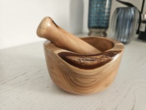 Mortier en If et pilon en Cade, tournés à la main en Provence. Un duo noble et sensoriel pour sublimer vos préparations ou enrichir votre décor.