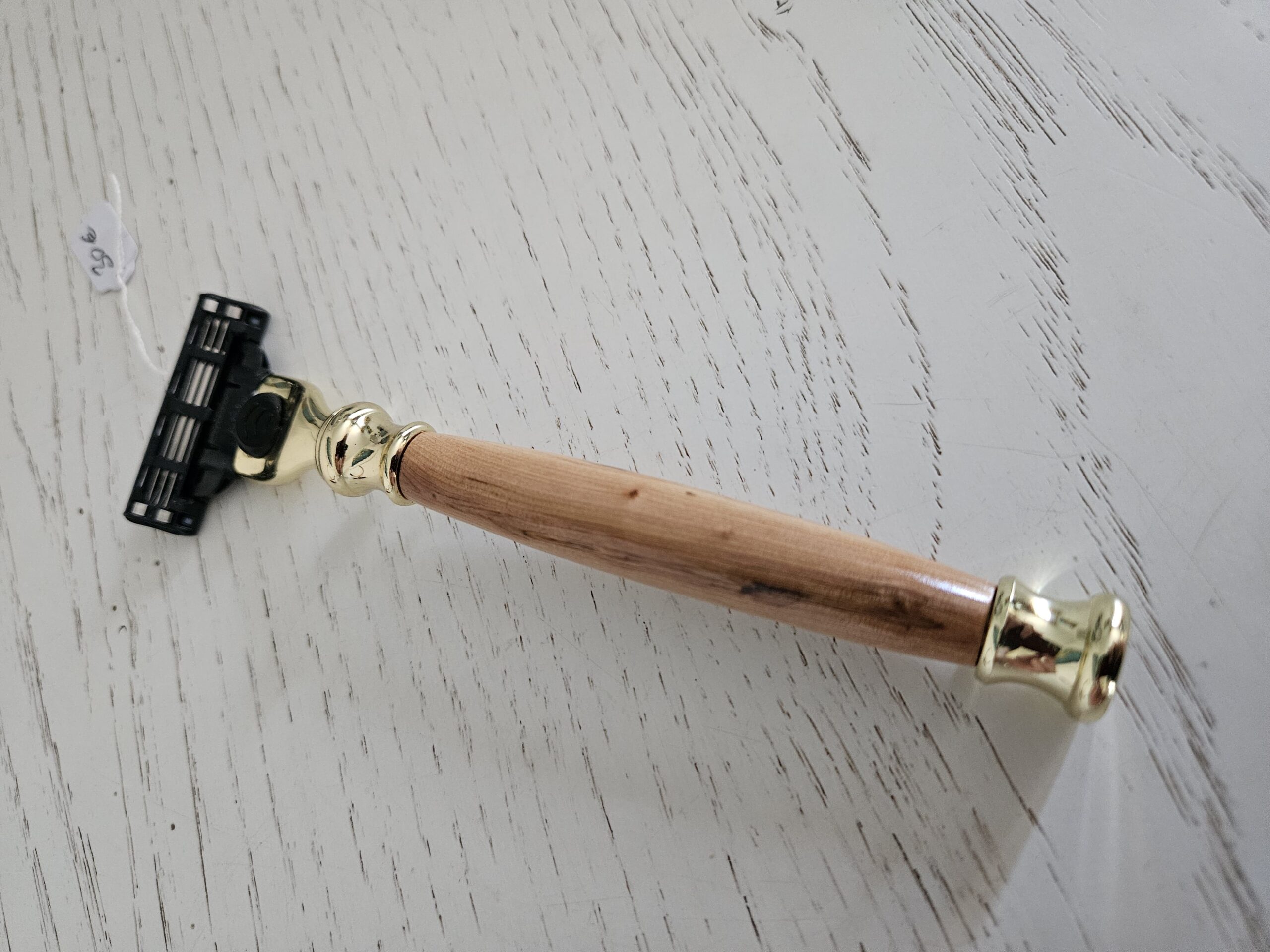 Rasoir artisanal en bois de cade (gilette 3 lames)