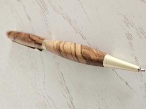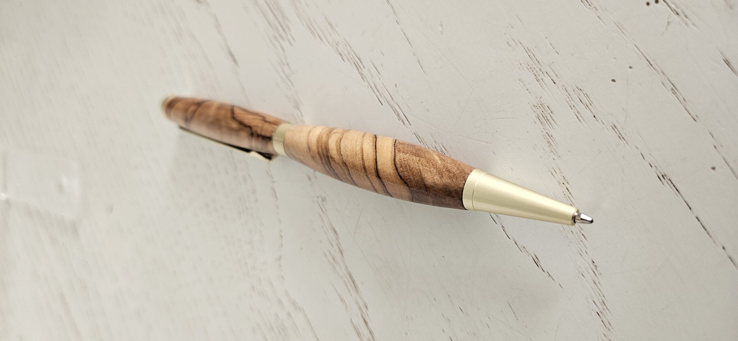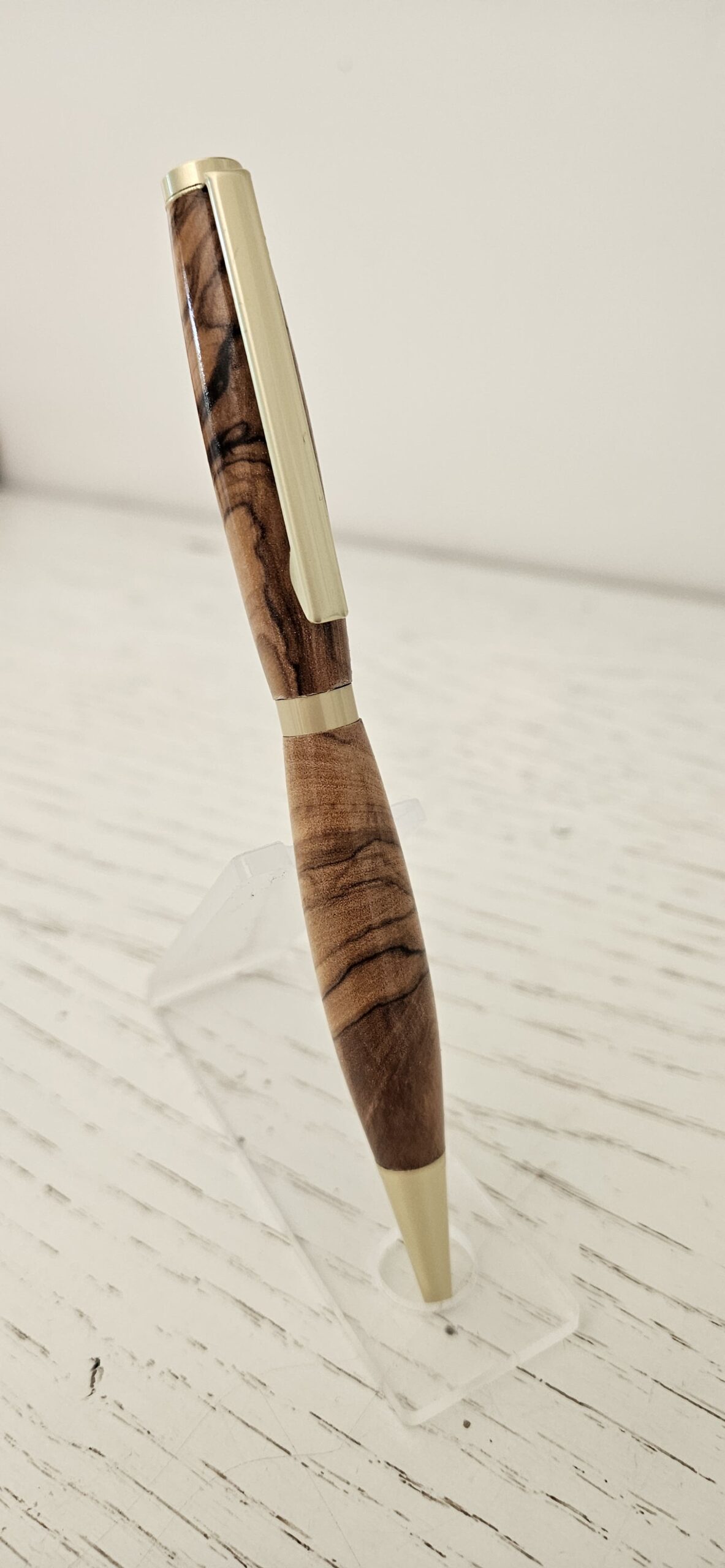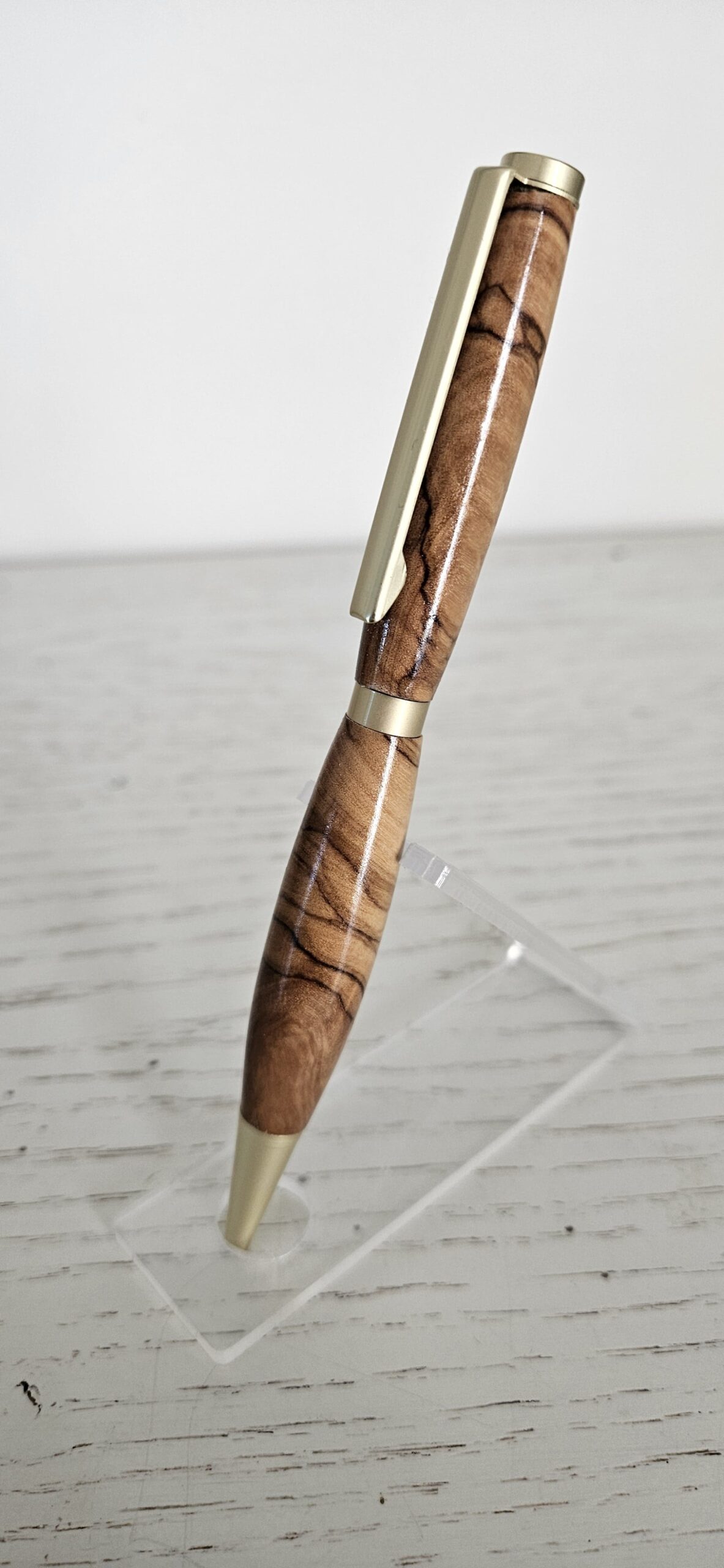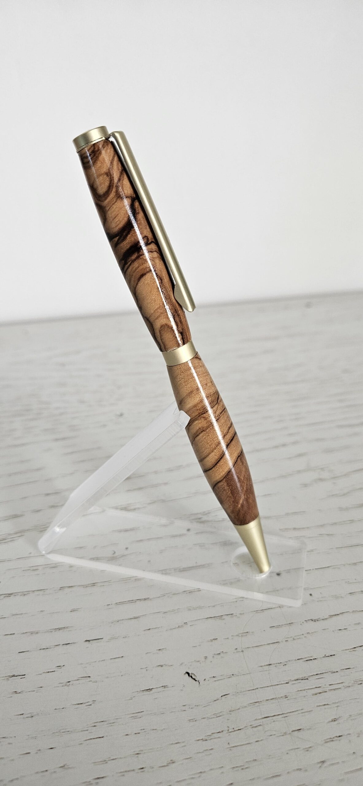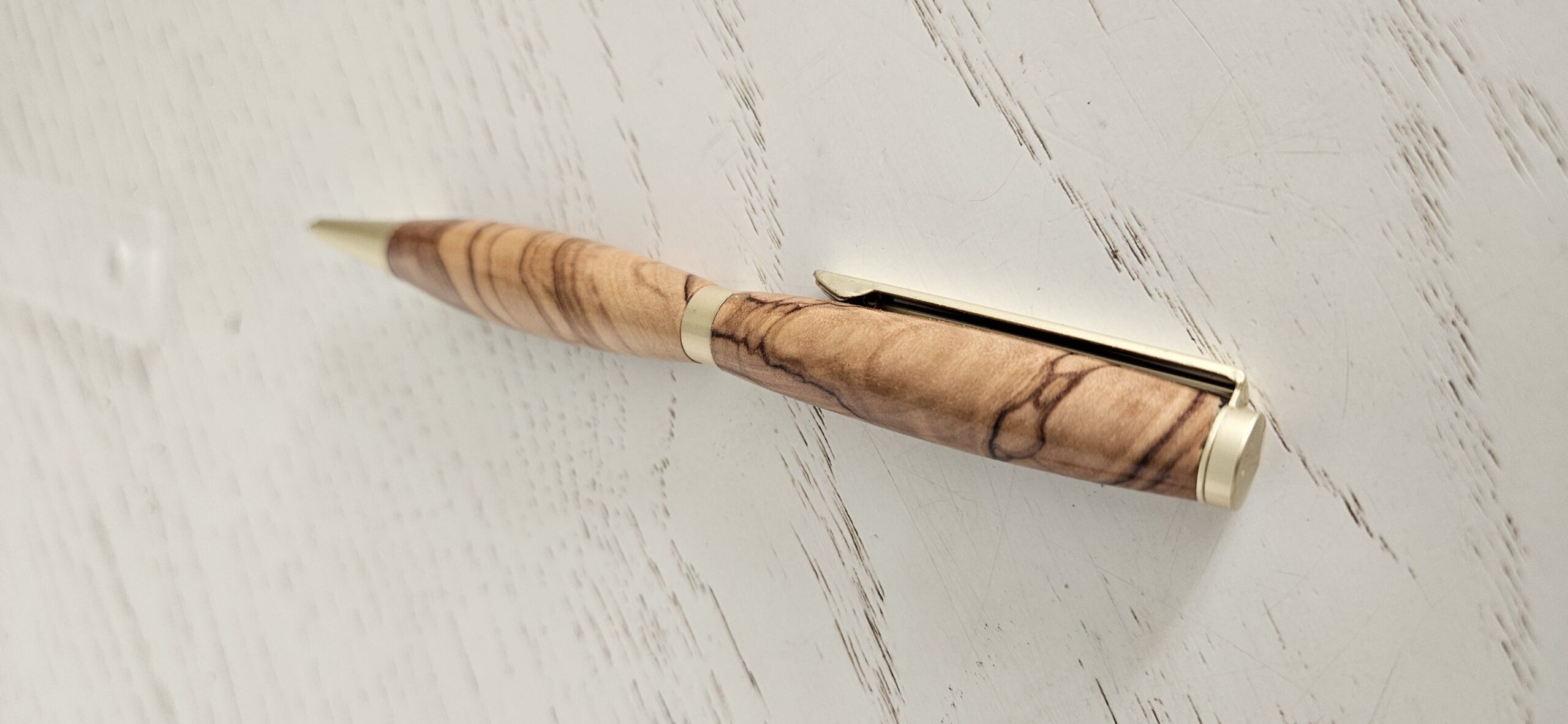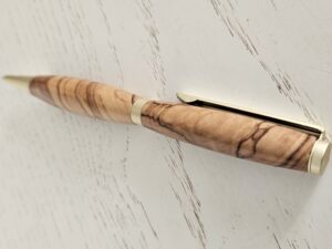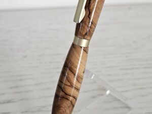 Découvrez l’élégance naturelle d’un stylo bille en bois d’olivier, façonné avec soin pour offrir une pièce d’écriture unique, chaleureuse et durable. Chaque stylo est tourné dans un bois d’olivier sélectionné pour son veinage exceptionnel : des nuances dorées, des contrastes profonds et des motifs organiques qui rendent chaque exemplaire absolument singulier.