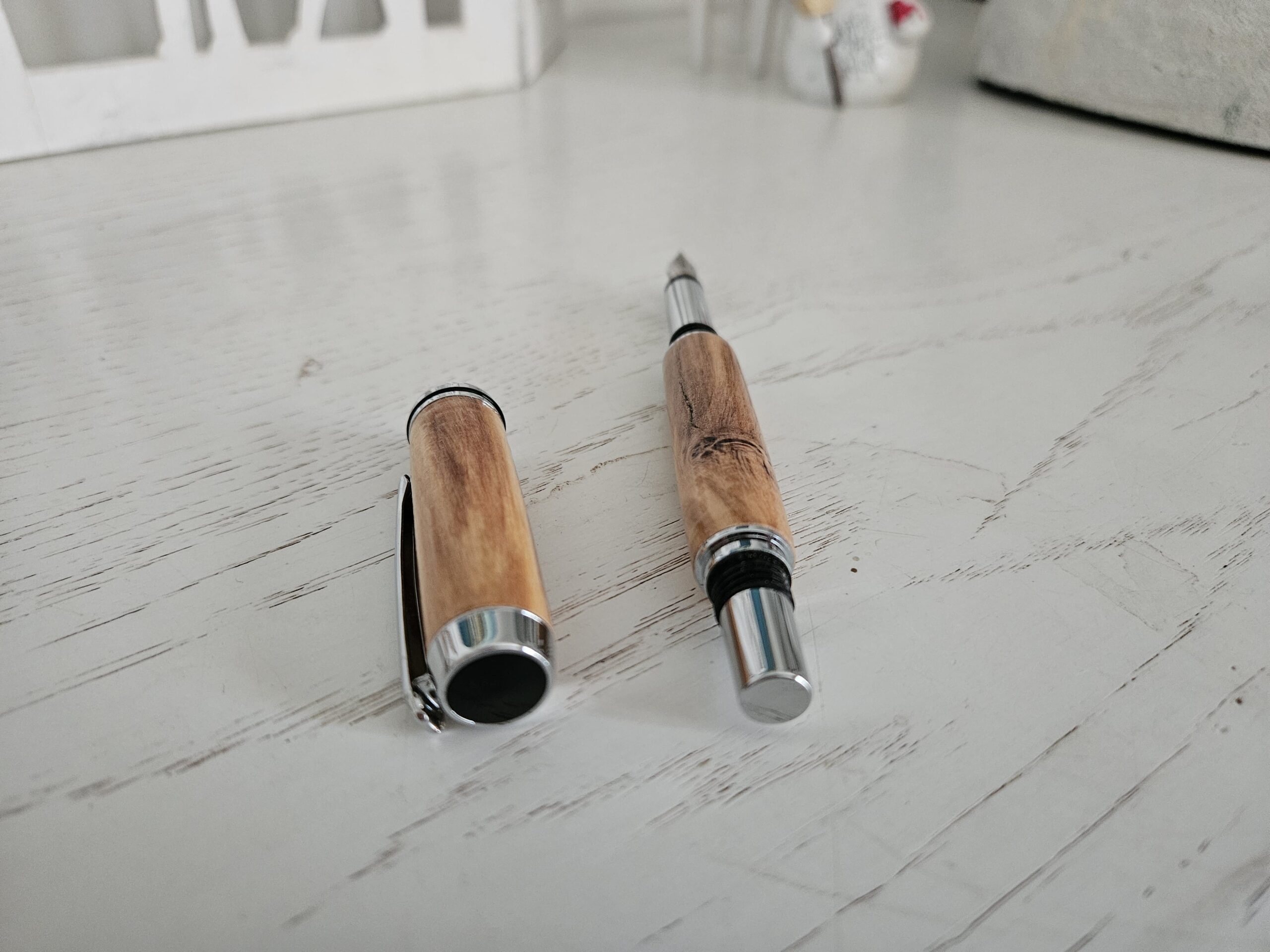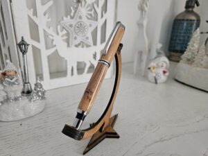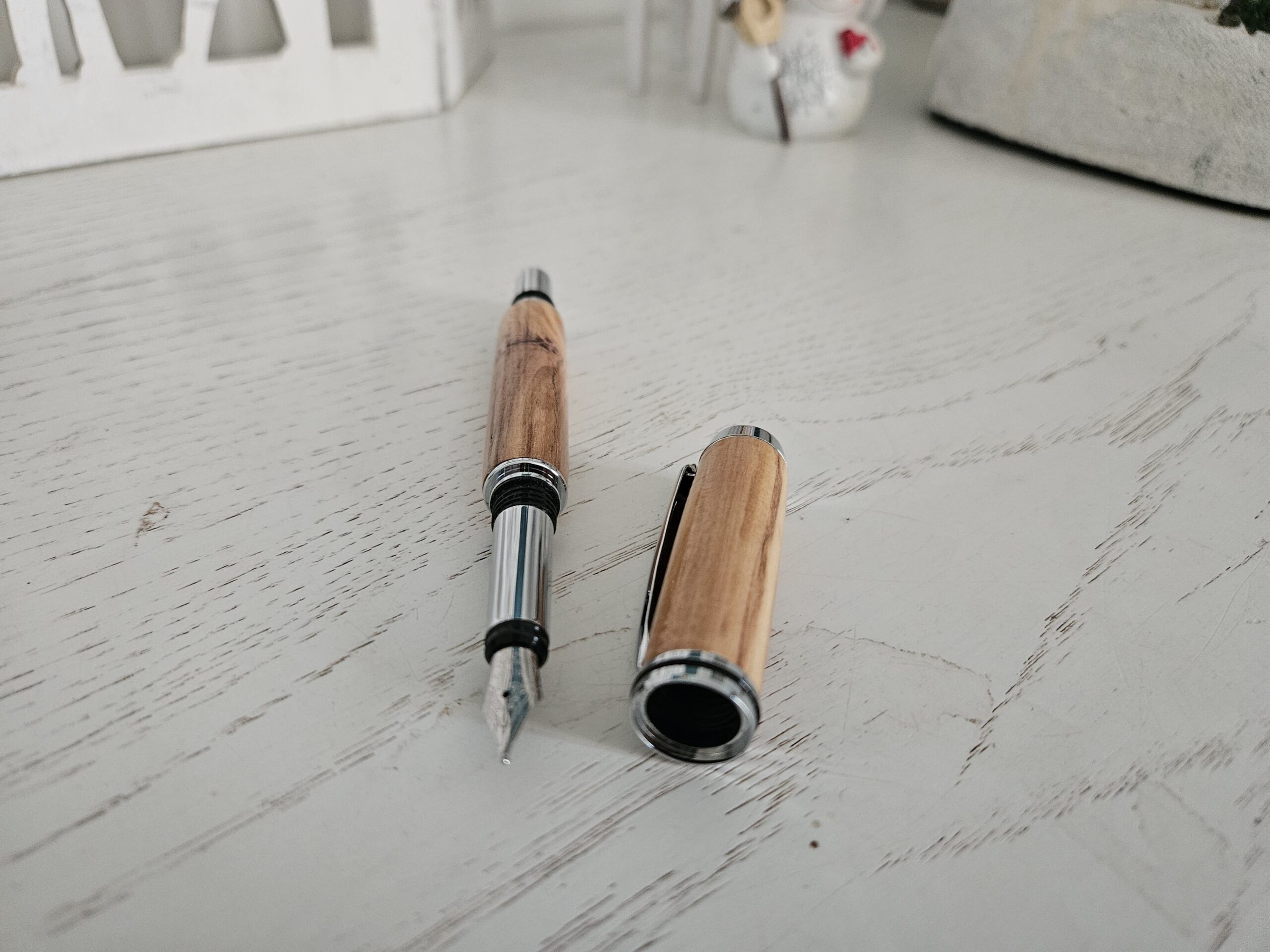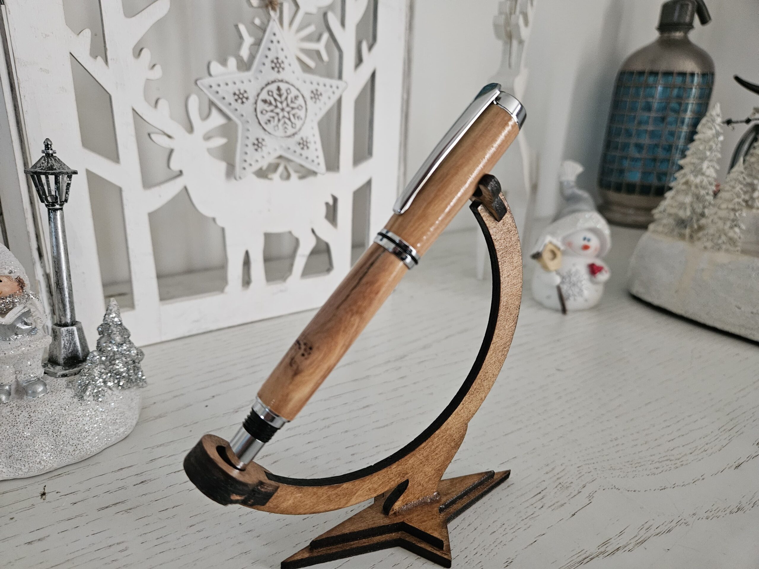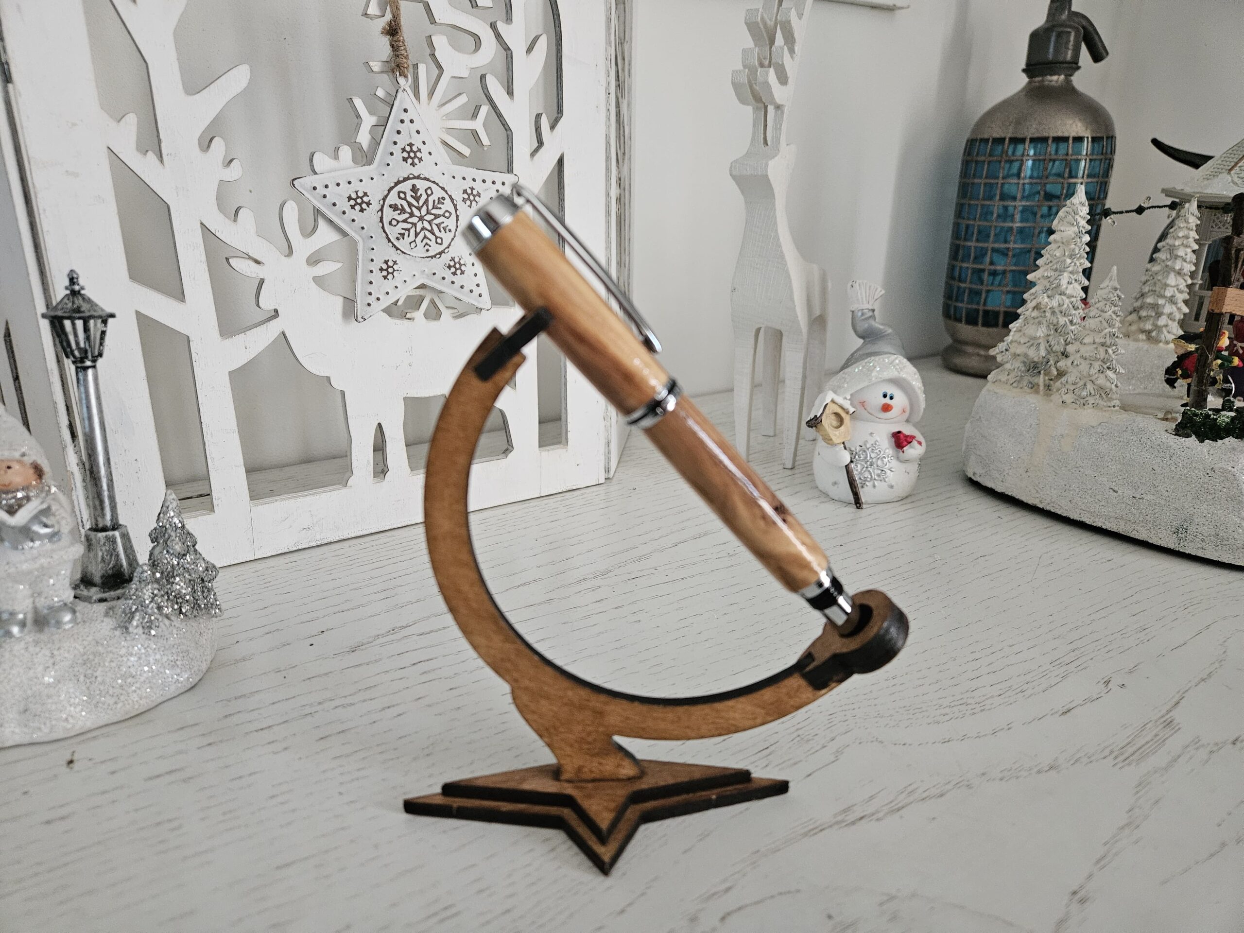 Ce stylo plume en bois d’olivier est bien plus qu’un simple instrument d’écriture : c’est une pièce d’artisanat qui célèbre la noblesse des matériaux naturels et le charme des fêtes de fin d’année. Sculpté dans un bois d’olivier aux reflets dorés et veinures vivantes, il offre une prise en main chaleureuse et authentique. Placé au cœur d’un décor hivernal composé de figurines, sapins scintillants et scènes de village enneigé, ce stylo évoque la magie de Noël et le plaisir d’offrir un cadeau unique, durable et porteur de sens. Il séduira les amateurs d’écriture raffinée, les passionnés de bois noble et les amoureux de traditions revisitées.