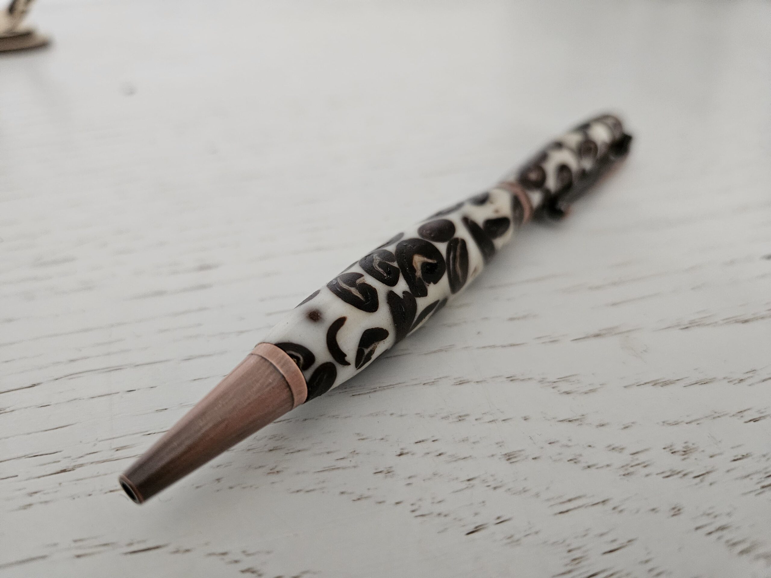 Ce stylo bille artisanal en résine et grains de café est une invitation sensorielle à l’écriture. Chaque pièce est tournée à la main dans notre atelier, où les grains de café véritables sont enchâssés dans une résine translucide, révélant un motif naturel et chaleureux, à la fois gourmand et élégant. Les finitions métalliques cuivrées (clip, pointe et bague centrale) viennent souligner son caractère raffiné et original.