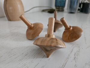 Leur forme épurée et équilibrée permet une rotation fluide, presque hypnotique. Chaque toupie est unique, façonnée avec soin dans notre atelier, et révèle les subtilités du bois naturel : veinures, nœuds, et variations de teinte. Elles peuvent être utilisées comme jouets, objets décoratifs ou pièces de collection.